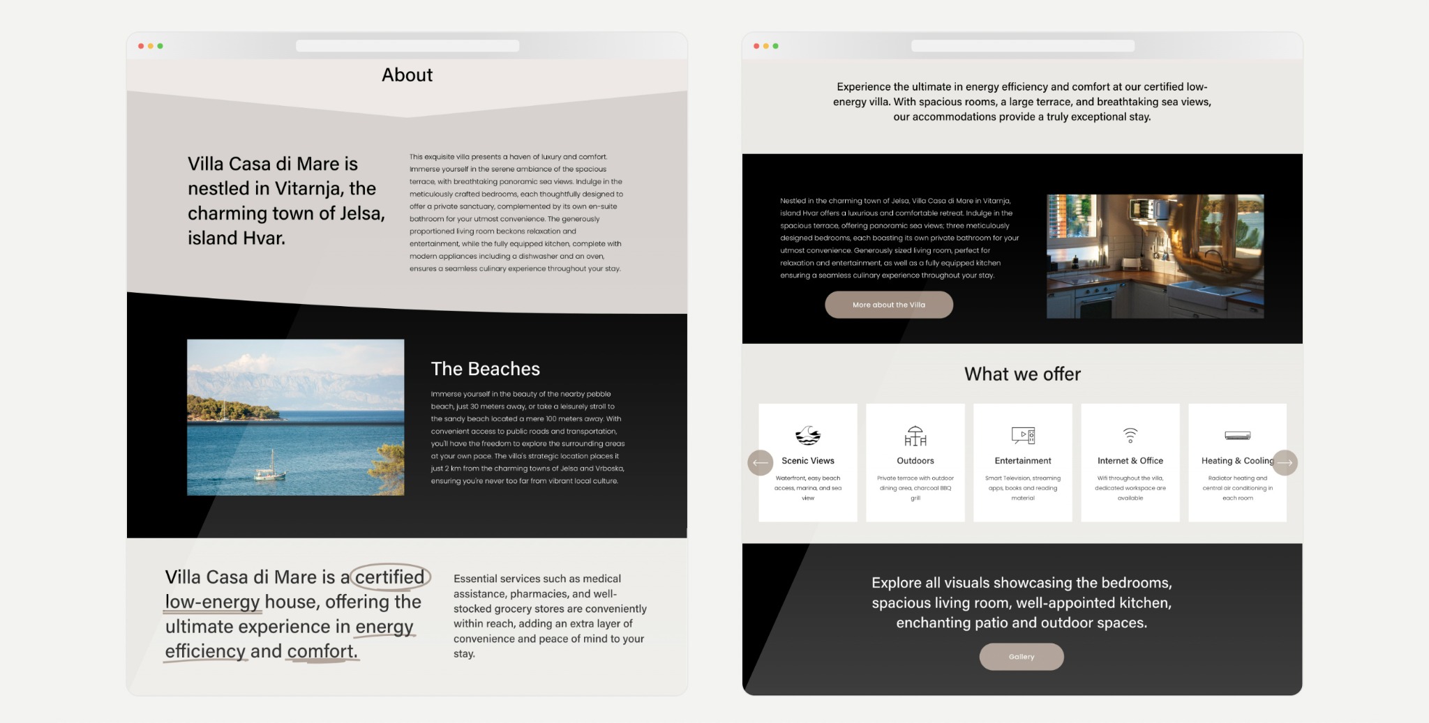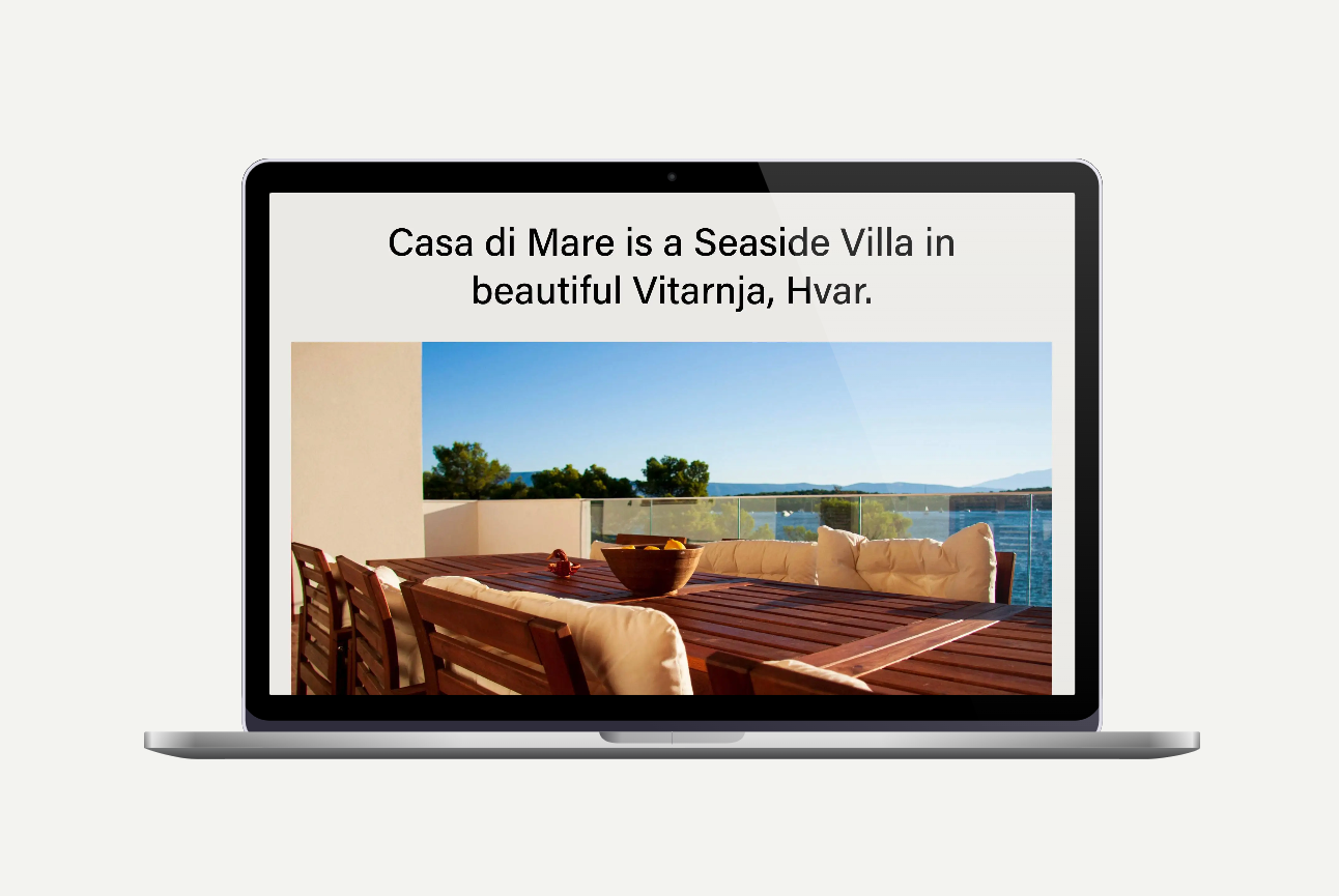 For the Casa di Mare project, I created a comprehensive brand identity, website, and a copy for a private villa in Hvar, Croatia